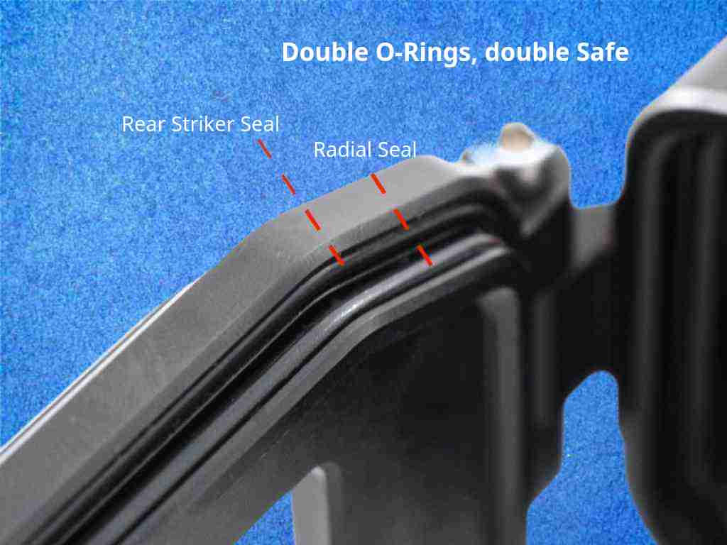 Das seitliche Scharnier ermöglicht das einfache Öffnen und Schließen des Gehäuses. Eine doppelte O-Ringdichtung sorgt für die Abdichtung des Deckels, ein Zinkschutz schützt vor galvanischen Strömen und eine Prädispositionskappe für das optionale externe Batteriepaket.
