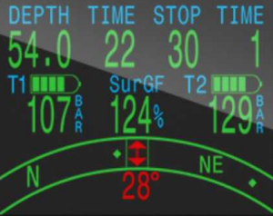 3 Gas Nitrox-Computer mit Funktionen für den ernsthaften Sporttauchen-Enthusiasten. Inklusive adaptive Sicherheitsstopp und NDL Anzeige.