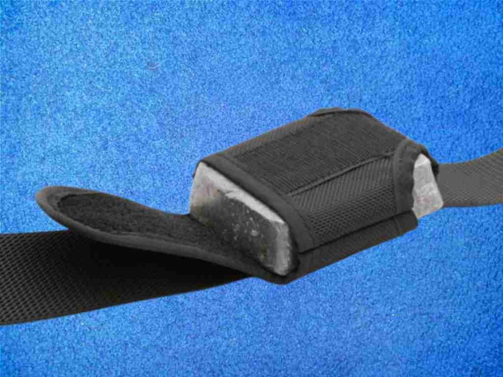 Die DUX Trimm Bleitasche ist für Gurte mit einer Breite von bis zu 50 mm geeignet. Die Bleitasche lässt sich mit einem im Lieferumfang enthaltenen Edelstahlstopper präzise am Gurt fixieren.